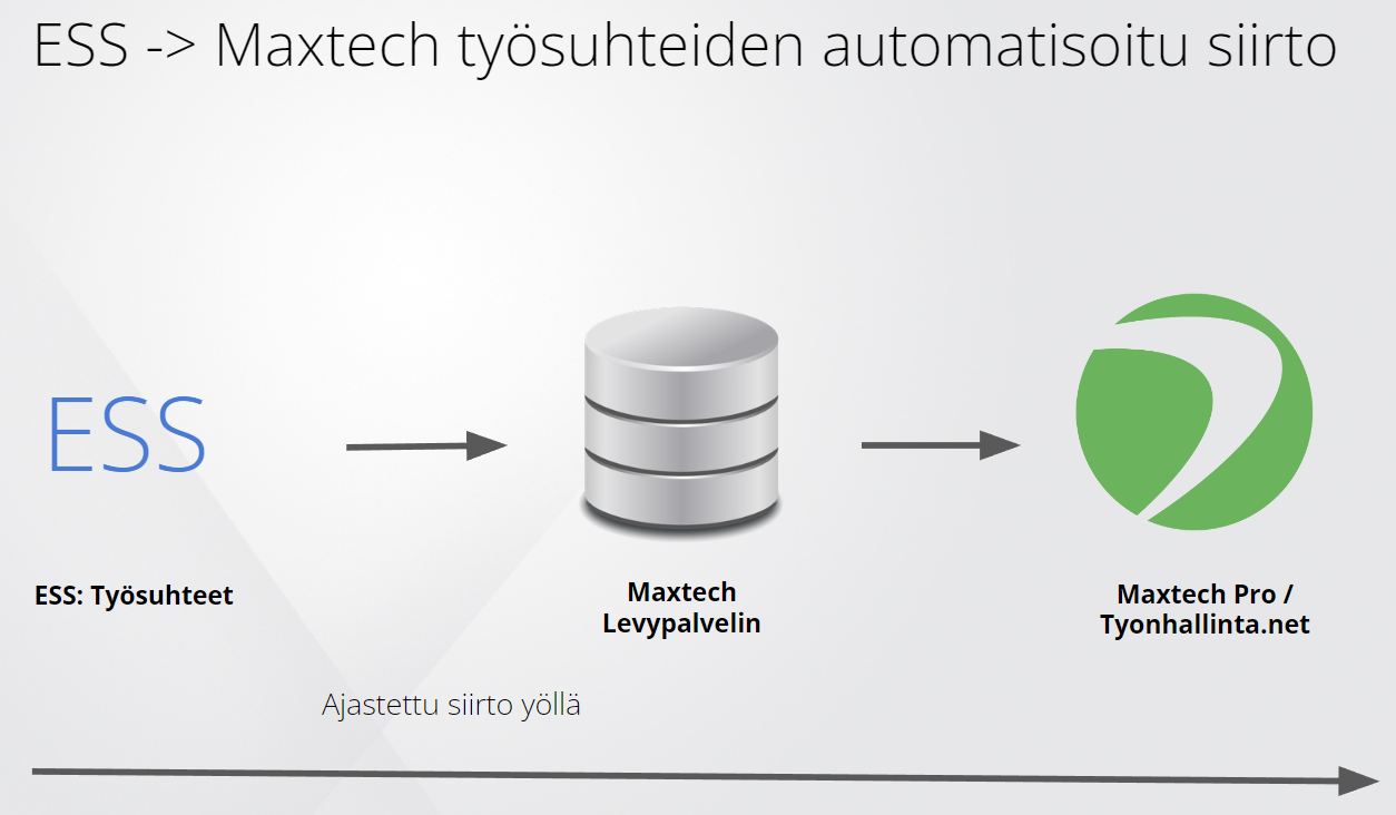 | Tiedonsiirtotapa | csv-muotoiset tiedostot siirretään Maxtechin ylläpitämälle levynkulmapalvelimelle, josta ne luetaan ajastetusti järjestelmään |