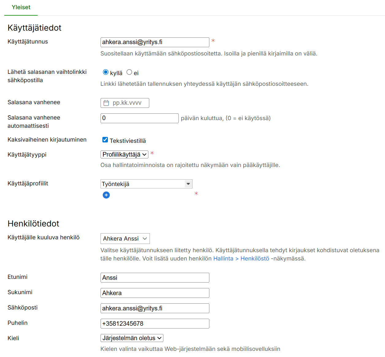 Käyttäjätiedot, henkilötiedot ja oikeudet