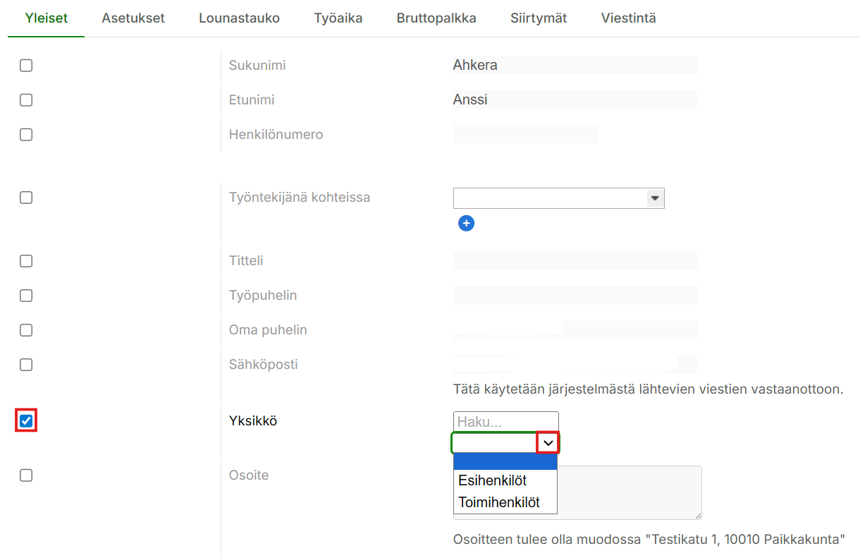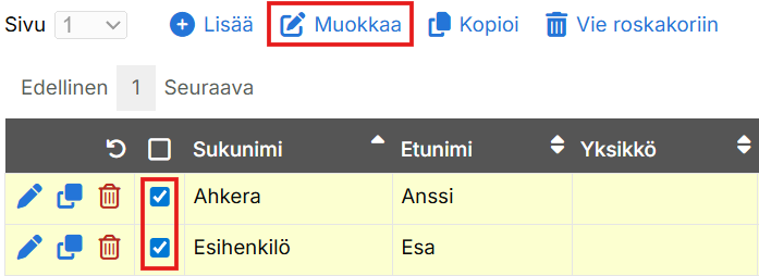 Miten lisään henkilöitä juuri luomaani yksikköön?
