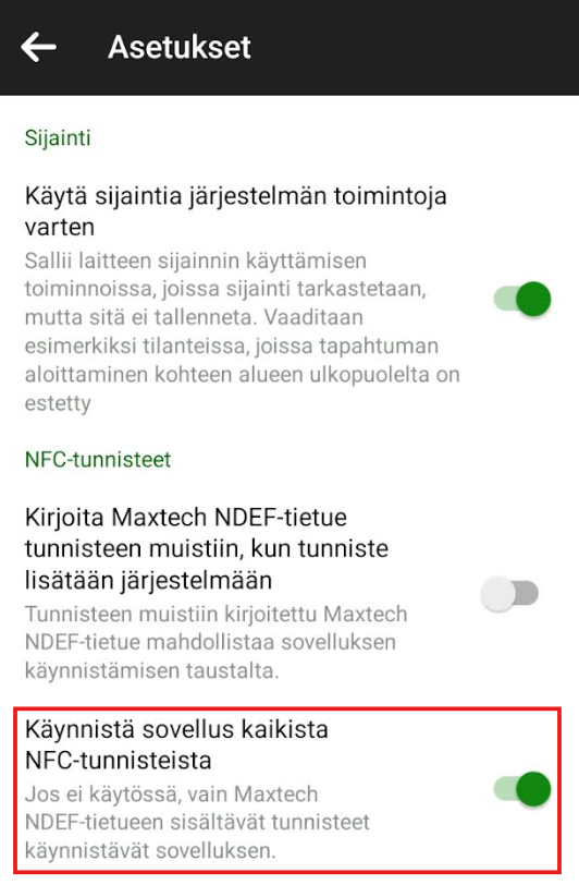 Jos Maxtech Pro -sovellus käynnistyy itsestään muiden ohjelmien päälle, syynä on yleensä se, että sovelluksen asetuksissa on käytössä toiminto “Käynnistä sovellus kaikista NFC-tunnisteista”. Kun puhelin on kotelossa, jossa on etäluettavia kortteja, kuten Plussa-kortti tai kirjastokortti, puhelimen NFC lukee kortin ja sovellus avautuu automaattisesti. Ongelman voi ratkaista menemällä Maxtech Pro -sovelluksen asetuksiin ja ottamalla pois käytöstä kohdan “Käynnistä sovellus kaikista NFC-tunnisteista”. Tämän jälkeen sovellus ei enää avaudu itsekseen kortteja luettaessa.