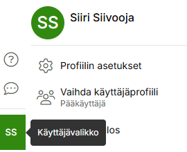 Kirjaudu web-järjestelmään ja klikkaa omia nimikirjaimiasi vasemmalta alhaalta, tämän jälkeen klikkaa Profiilin asetukset.