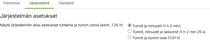Voit määrittää aika-asetukset Järjestelmä-välilehdeltä.