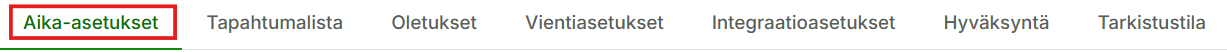 Päällekkäisien tapahtumien varoitukset löytyvät Aika-asetukset -välilehdeltä.