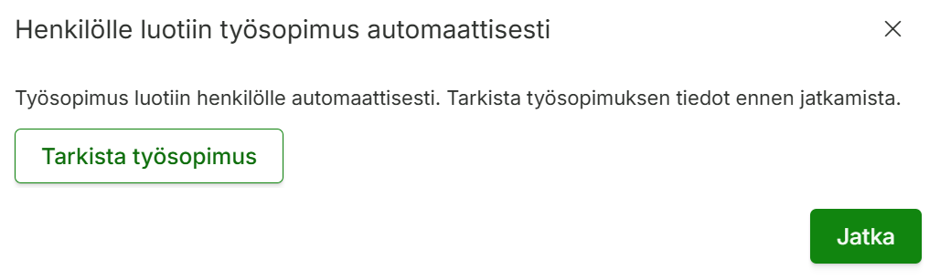 Työsopimuksen automaattinen luonti uuden henkilön tallennuksen yhteydessä