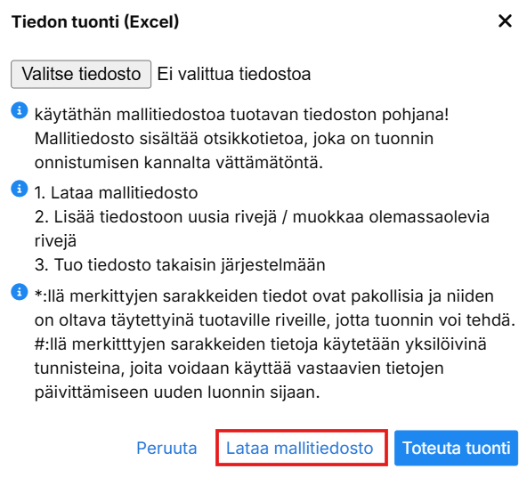 2. Klikkaa Lataa mallitiedosto -painiketta sivun alaosasta