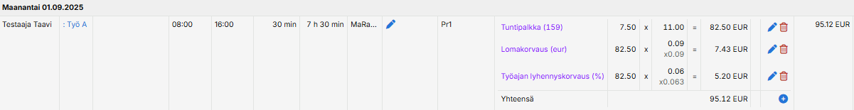 Lomakorvaus sekä työajanlyhennyskorvaus määritellään lisättävän automaattisesti aikatapahtumille.