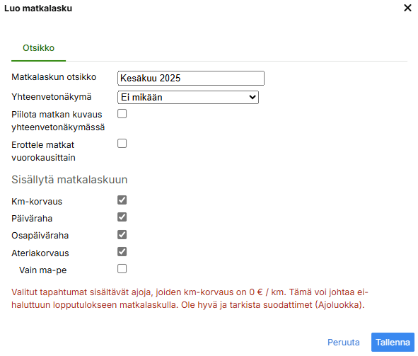 Matkalaskun muodostaminen ajopäiväkirjalta