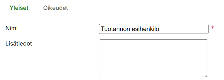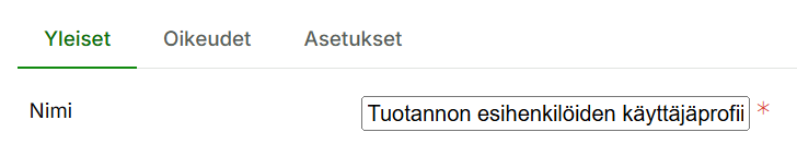 3.2 Yleiset-välilehti: Anna käyttäjäprofiilille nimi esim. ”Tuotannon esihenkilöiden käyttäjäprofiili”