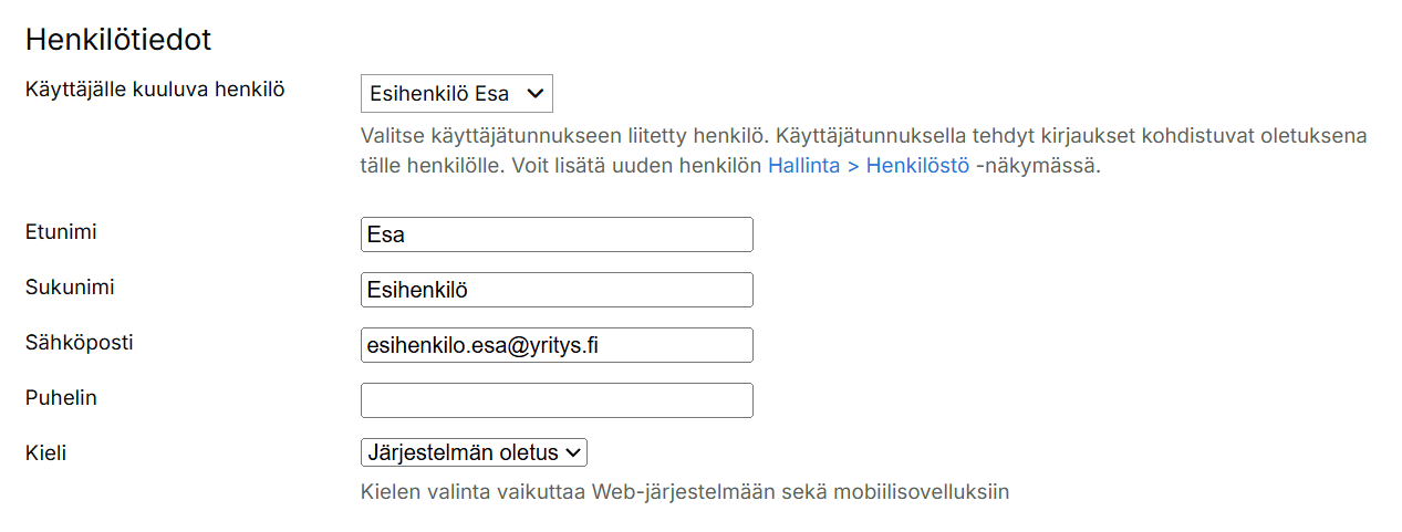 Käyttäjätunnuksen tarkoitus kannattaa miettiä ensin. Mitä toimintoja käyttäjällä tulee näkyä web-järjestelmän valikossa ja Maxtech-mobiilisovelluksessa. Onko organisaatiossa muita samanlaisia käyttäjiä useita, jolloin voisi hyödyntää samaa Käyttäjä- ja toimintoprofiilia. Voit hyödyntää jatkossa lisäämääsi toiminto- ja käyttäjäprofiilia myös muilla esihenkilökäyttäjillä.