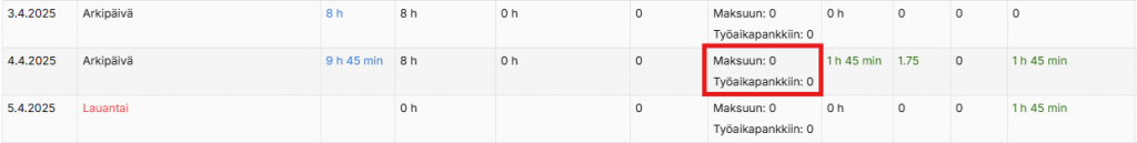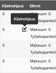 Muutos näkyy Käsinohjaus-sarakkeessa kyseisen päivän kohdalla. Voit tarvittaessa poistaa ohjauksen viemällä hiiren soluun ja klikkaamalla roskakori-painiketta.