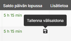 Vie hiiri Saldo päivän lopussa -sarakkeeseen halutun päivän kohdalle ja klikkaa Tallenna välisaldona -painiketta.